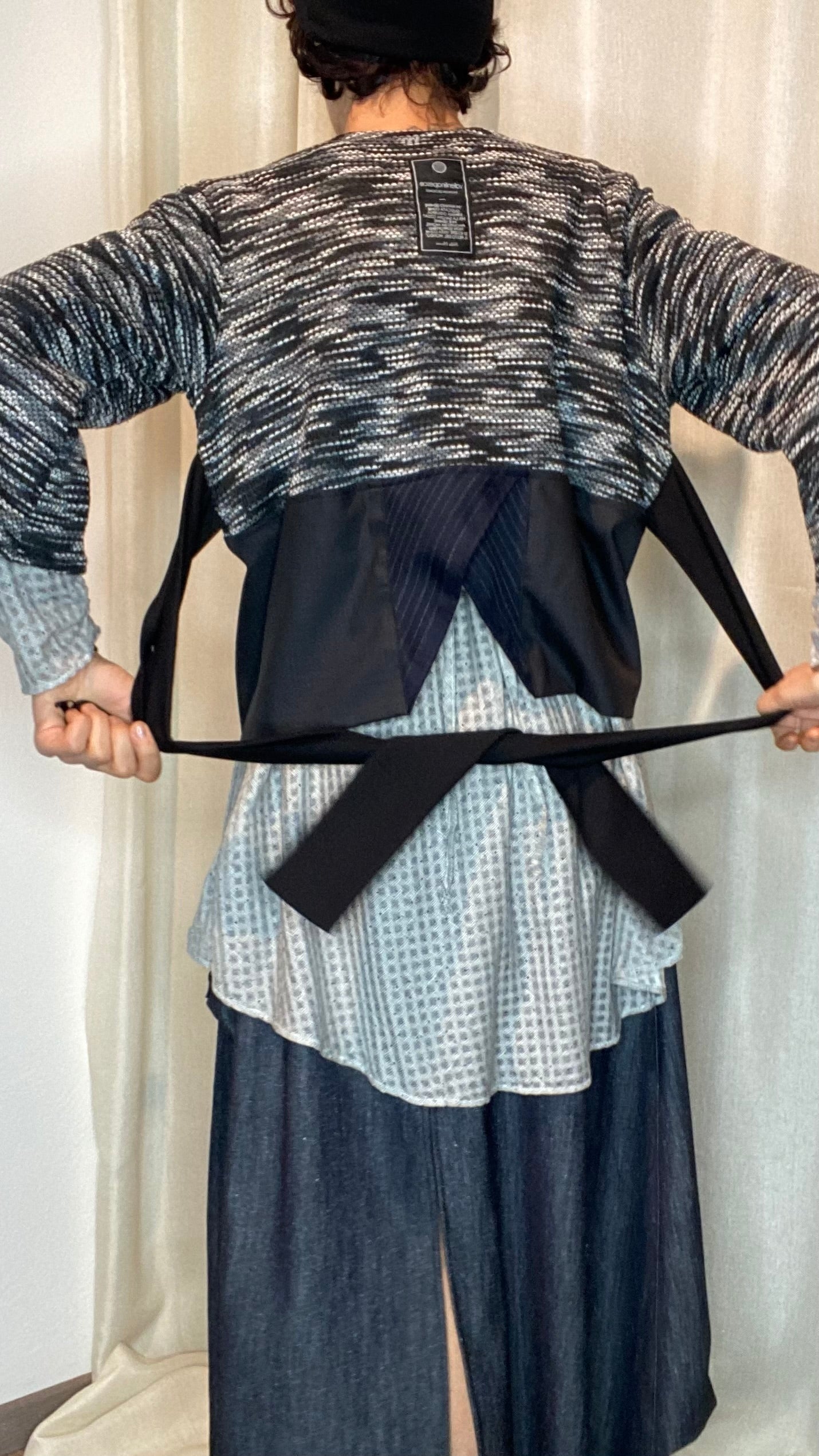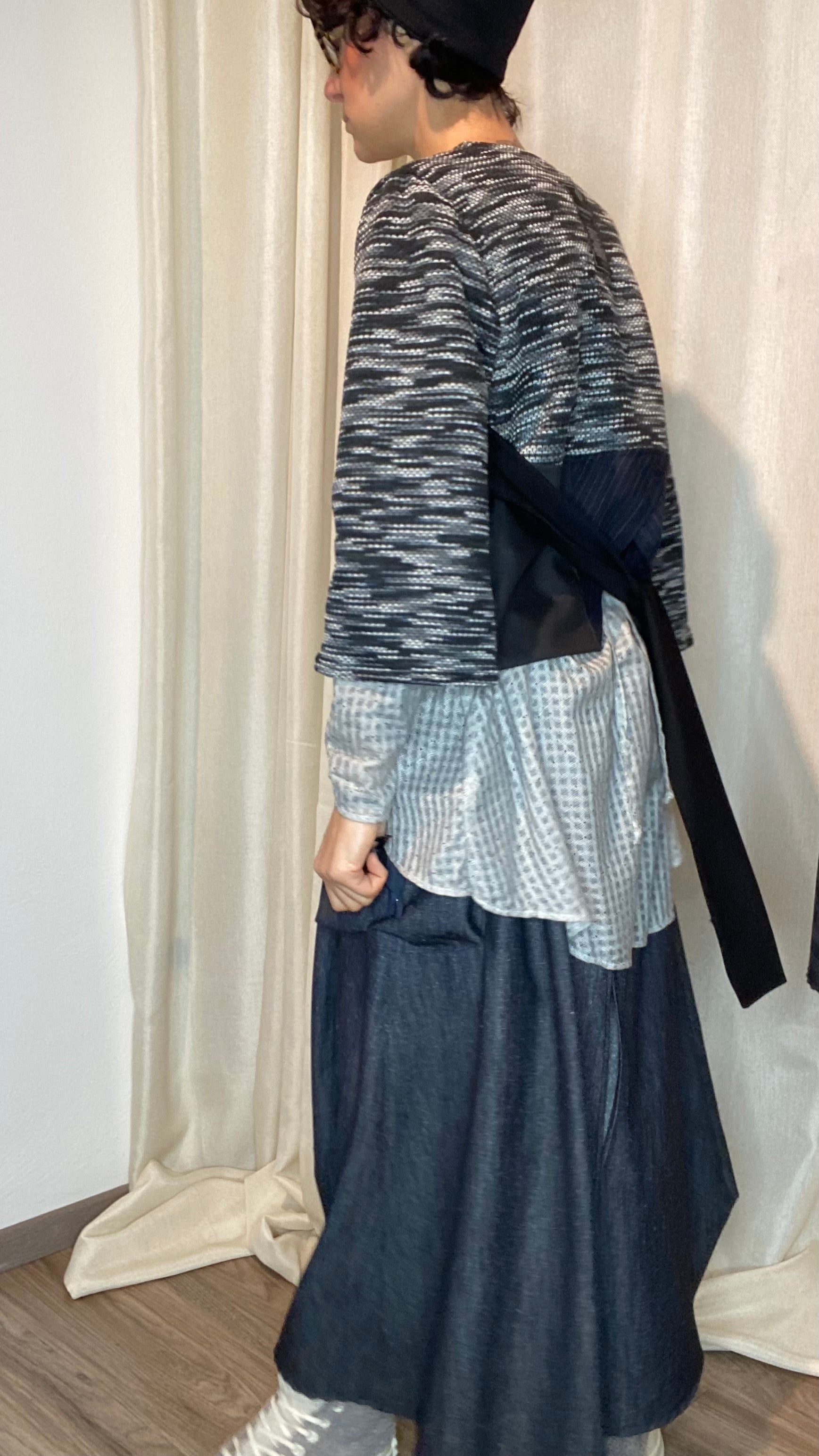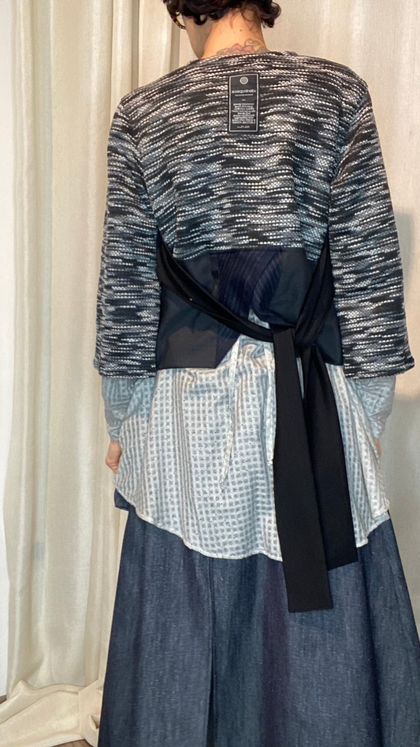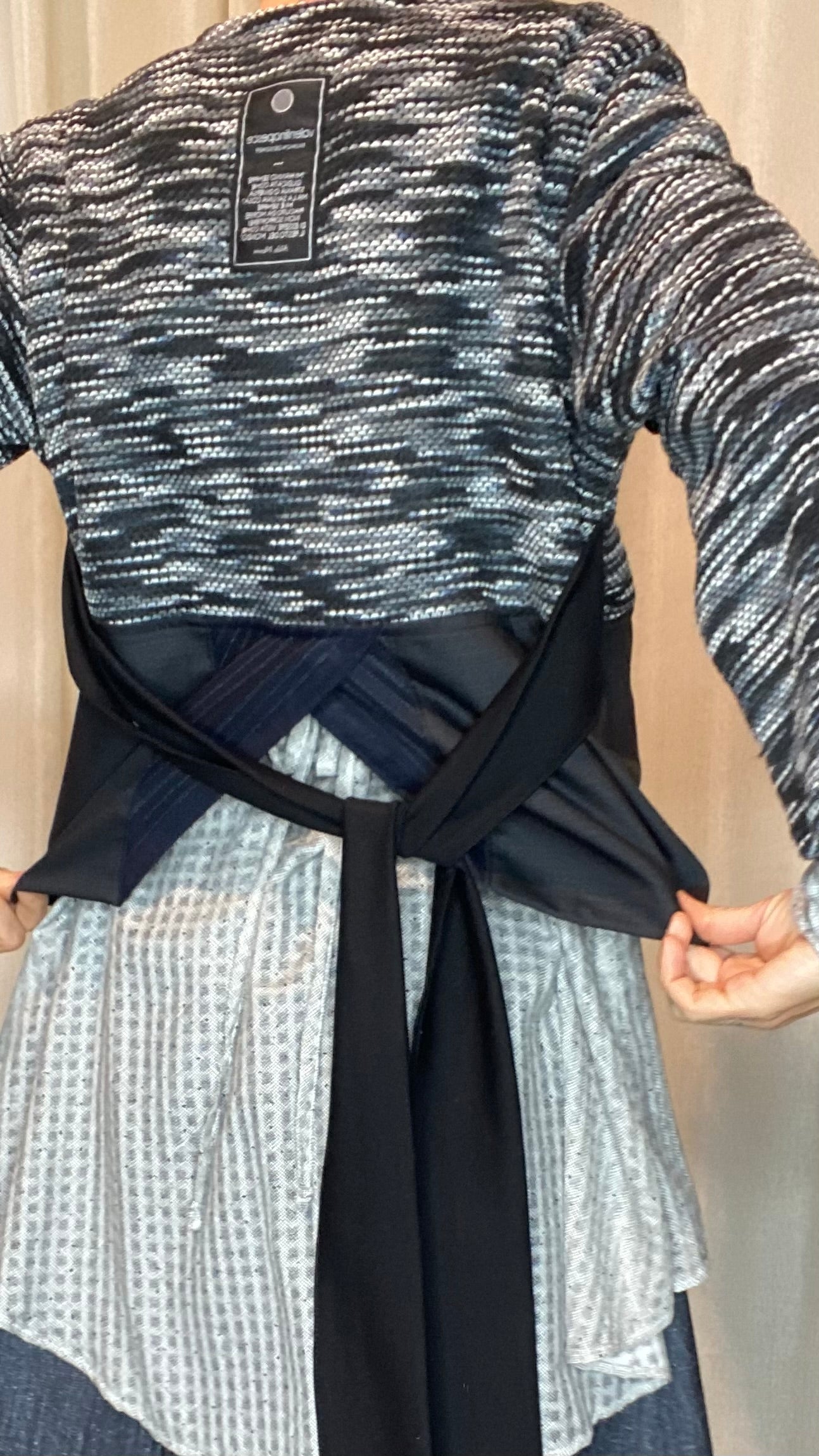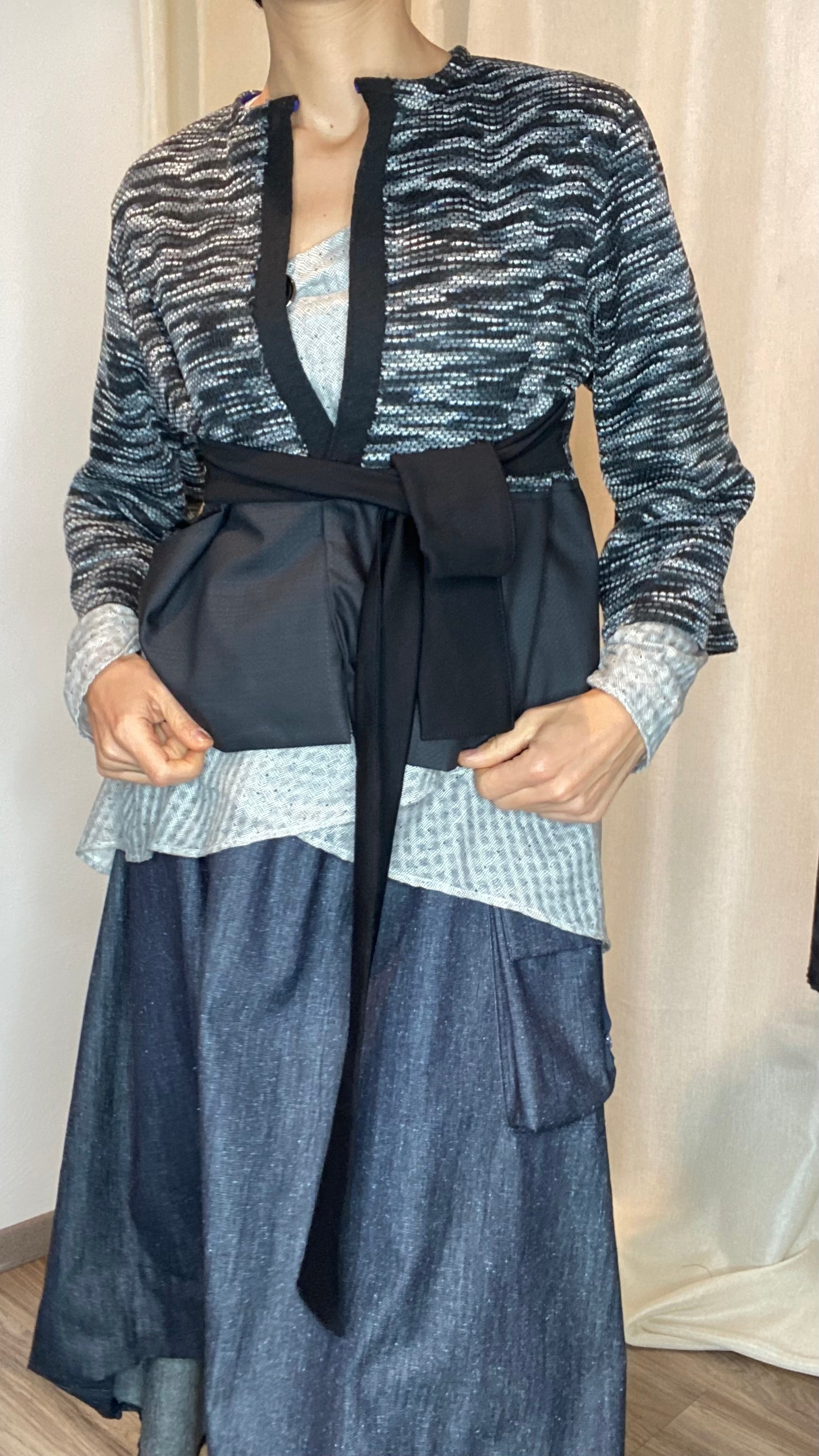 Cardigan morbidissimo con manica scampanata, in maglia e lana, si chiude in vita mediante bottone a pressione e lacci laterali. Taglia unica, veste dalla tg 38 alla tg 50.