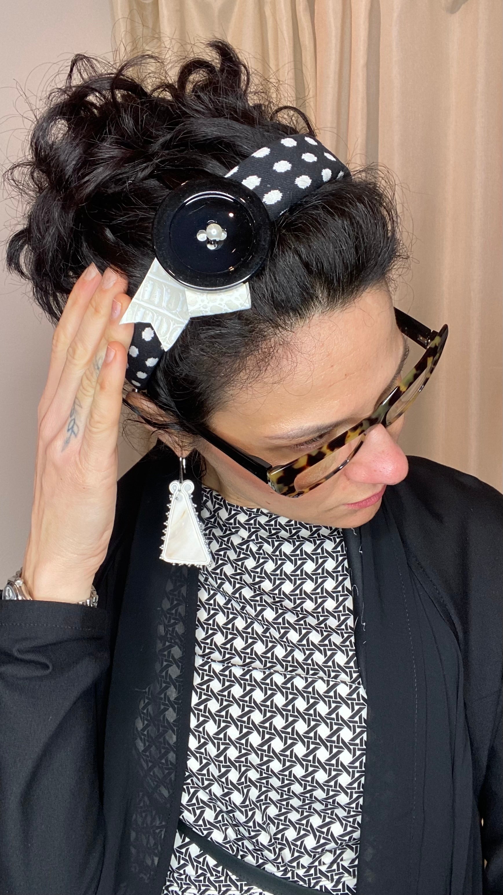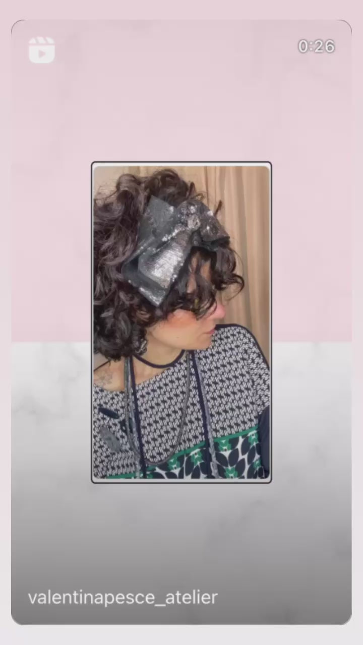 Cerchietto in raso e tessuto con applicazioni.