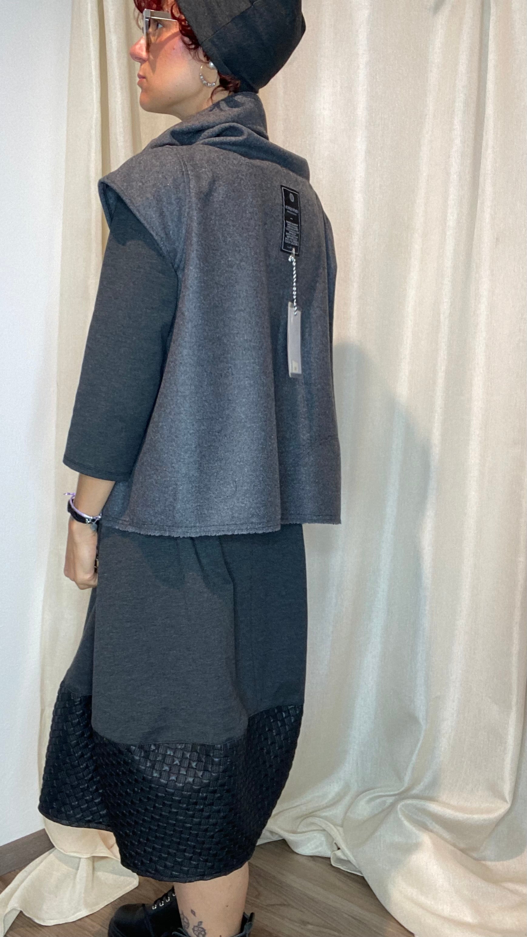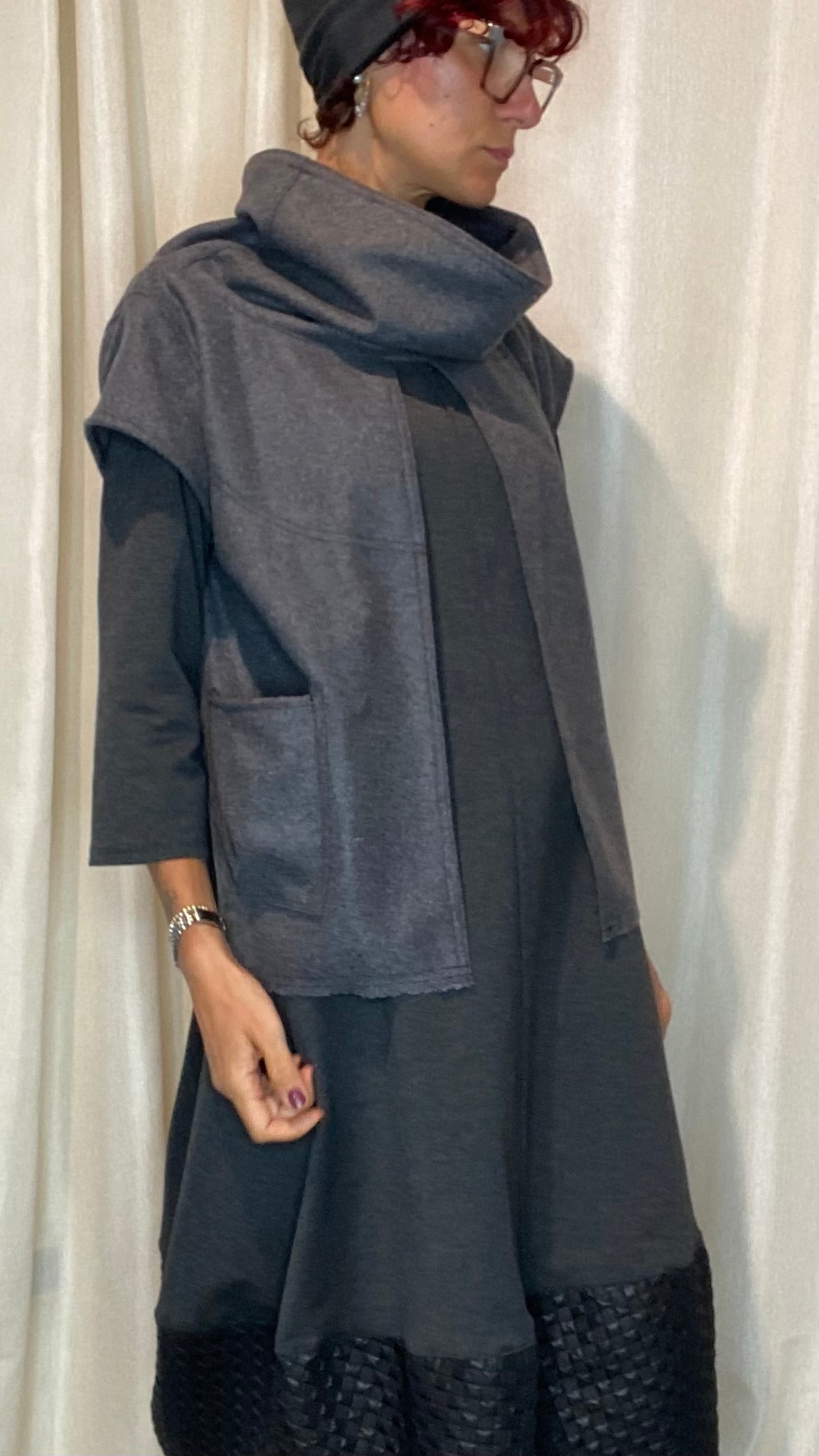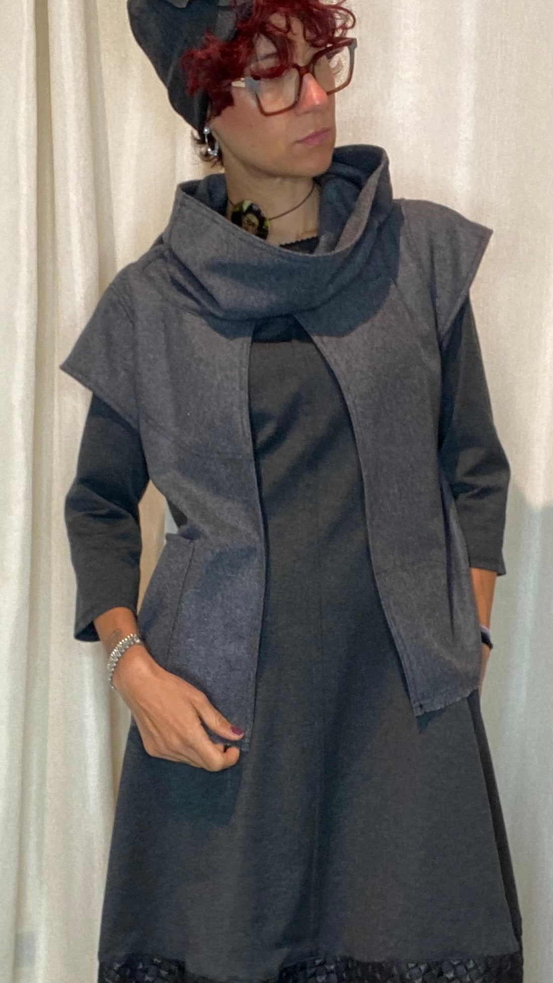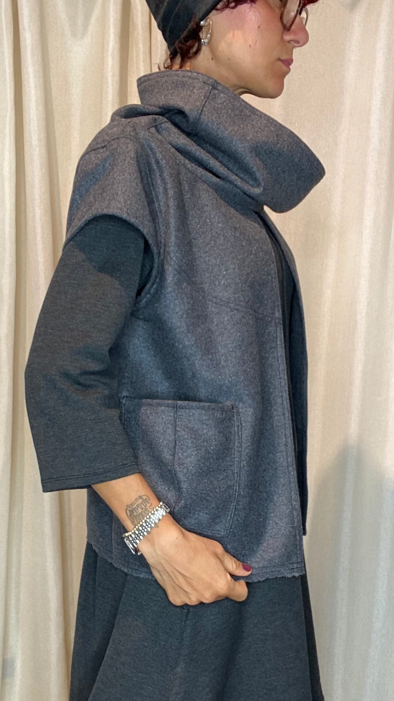 Coprispalle in lana, con manica ad aletta, collo alto e tasca laterale. Taglia unica, veste dalla tg 38 alla 50.