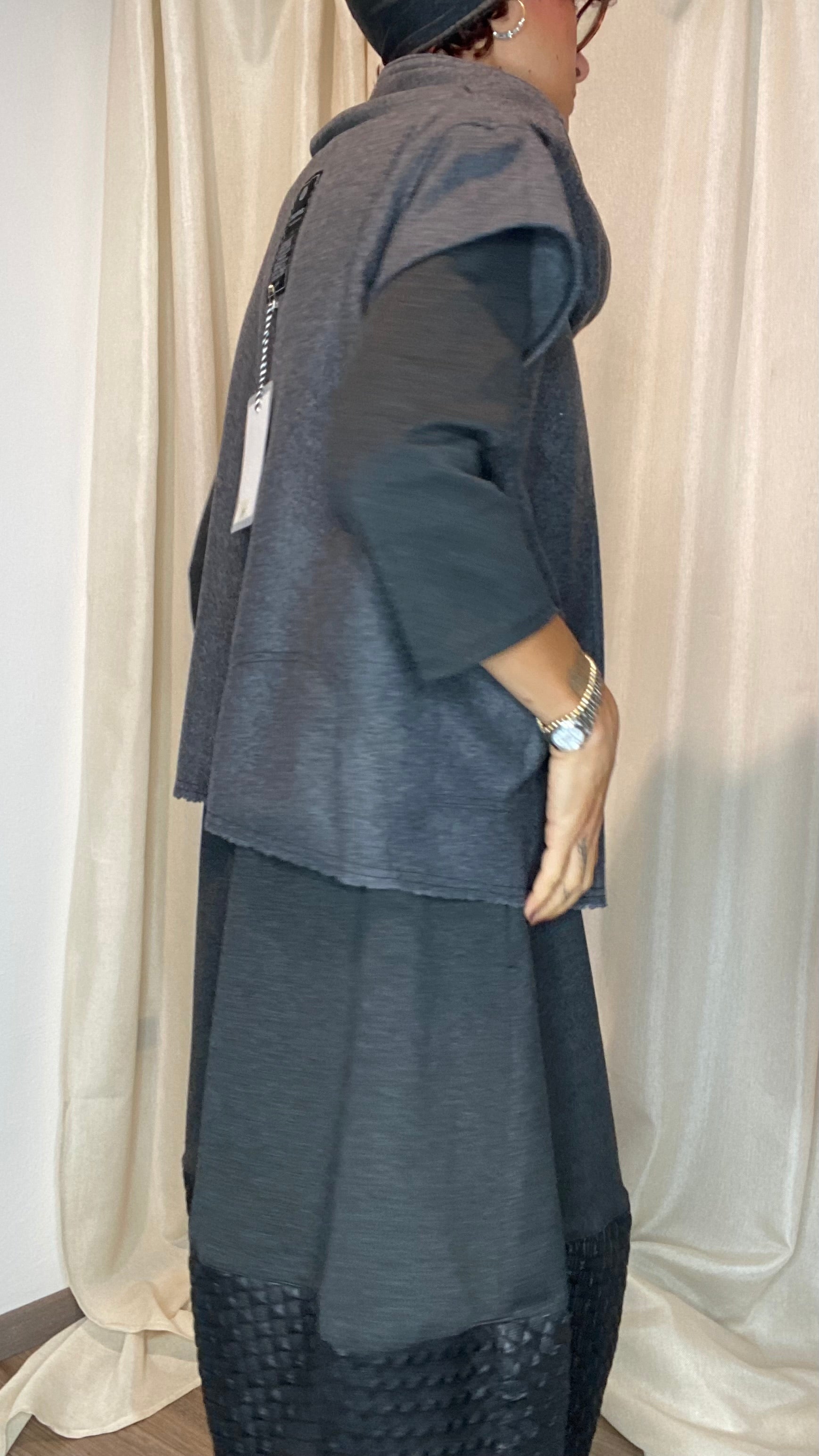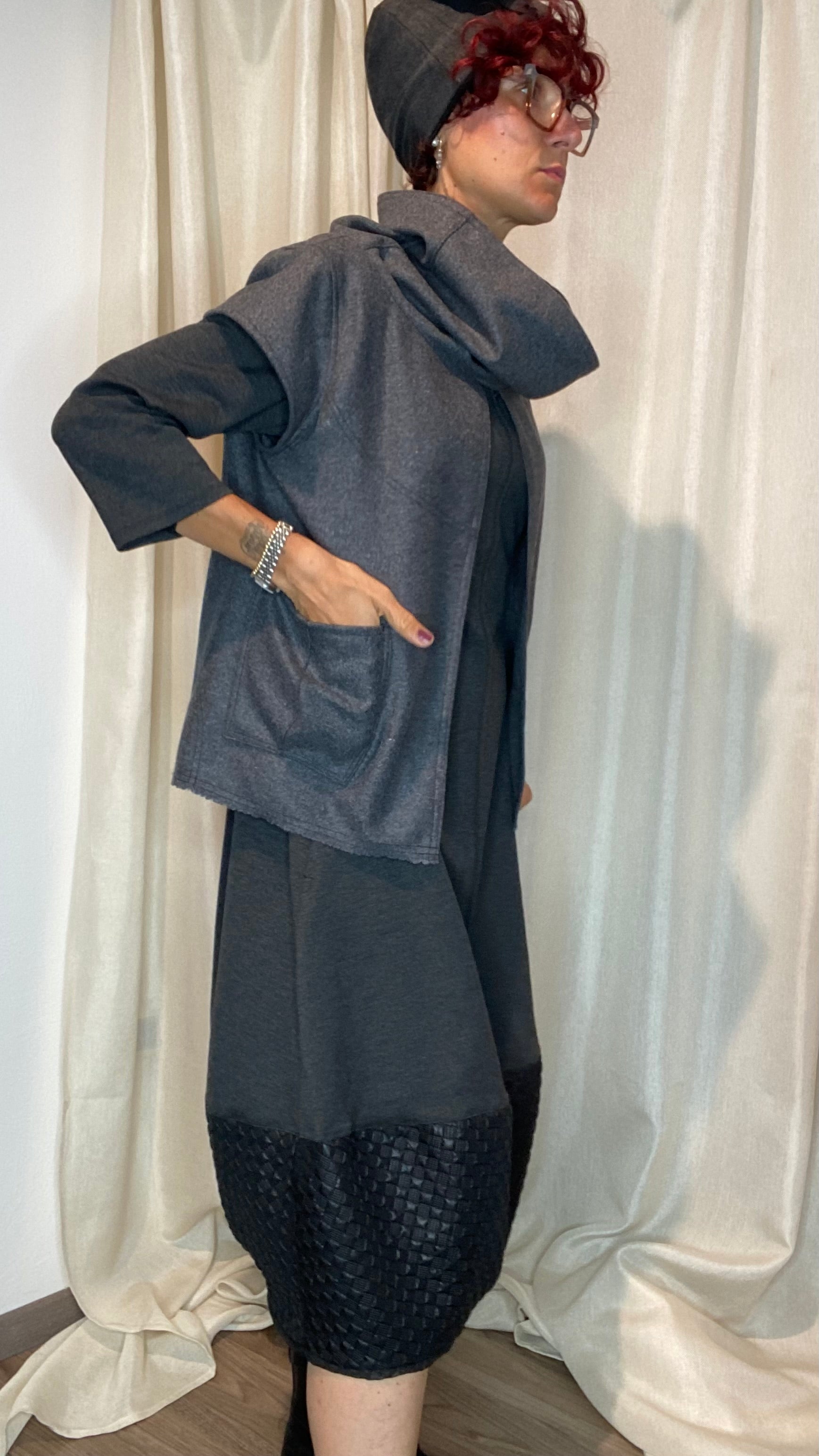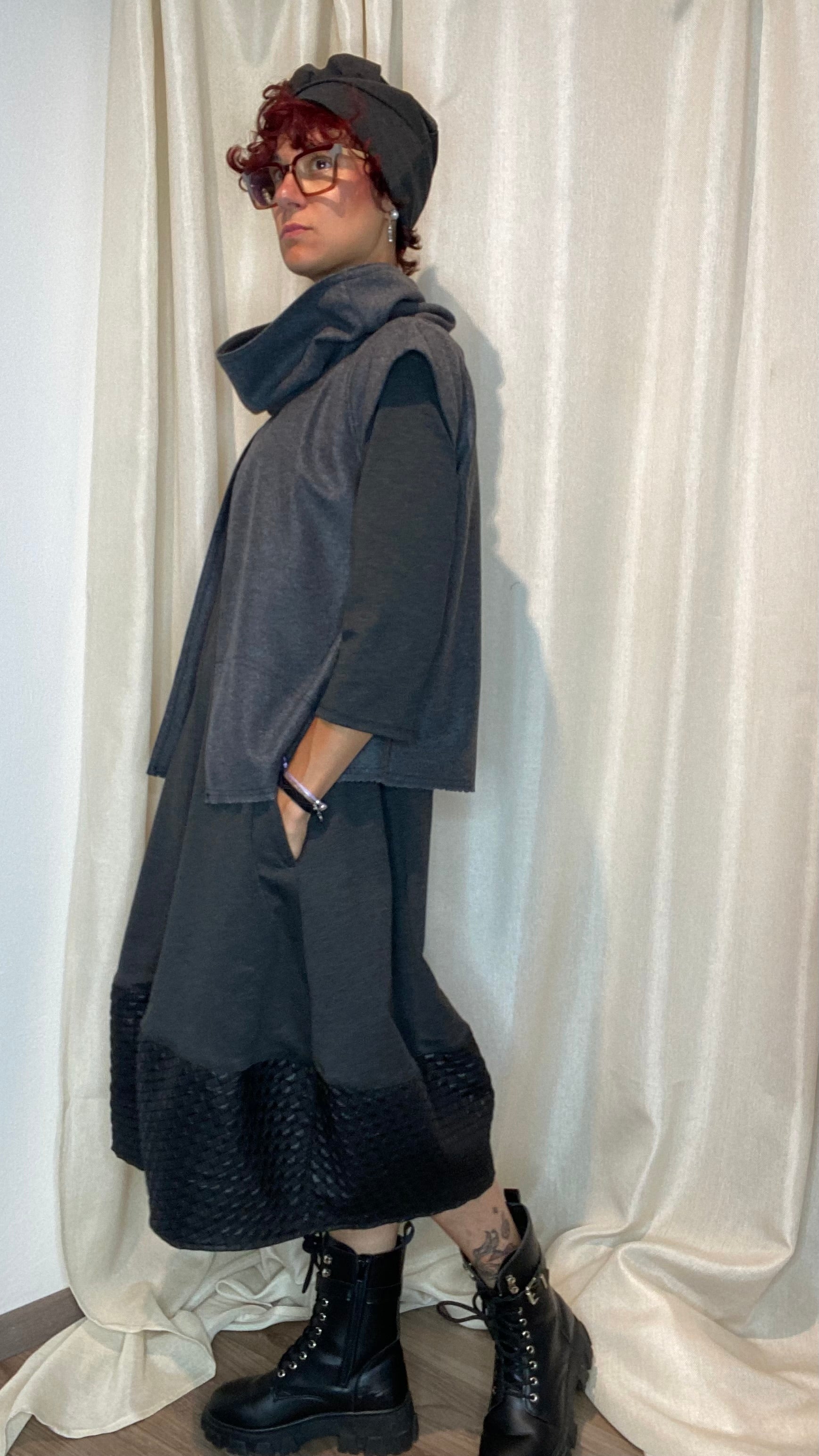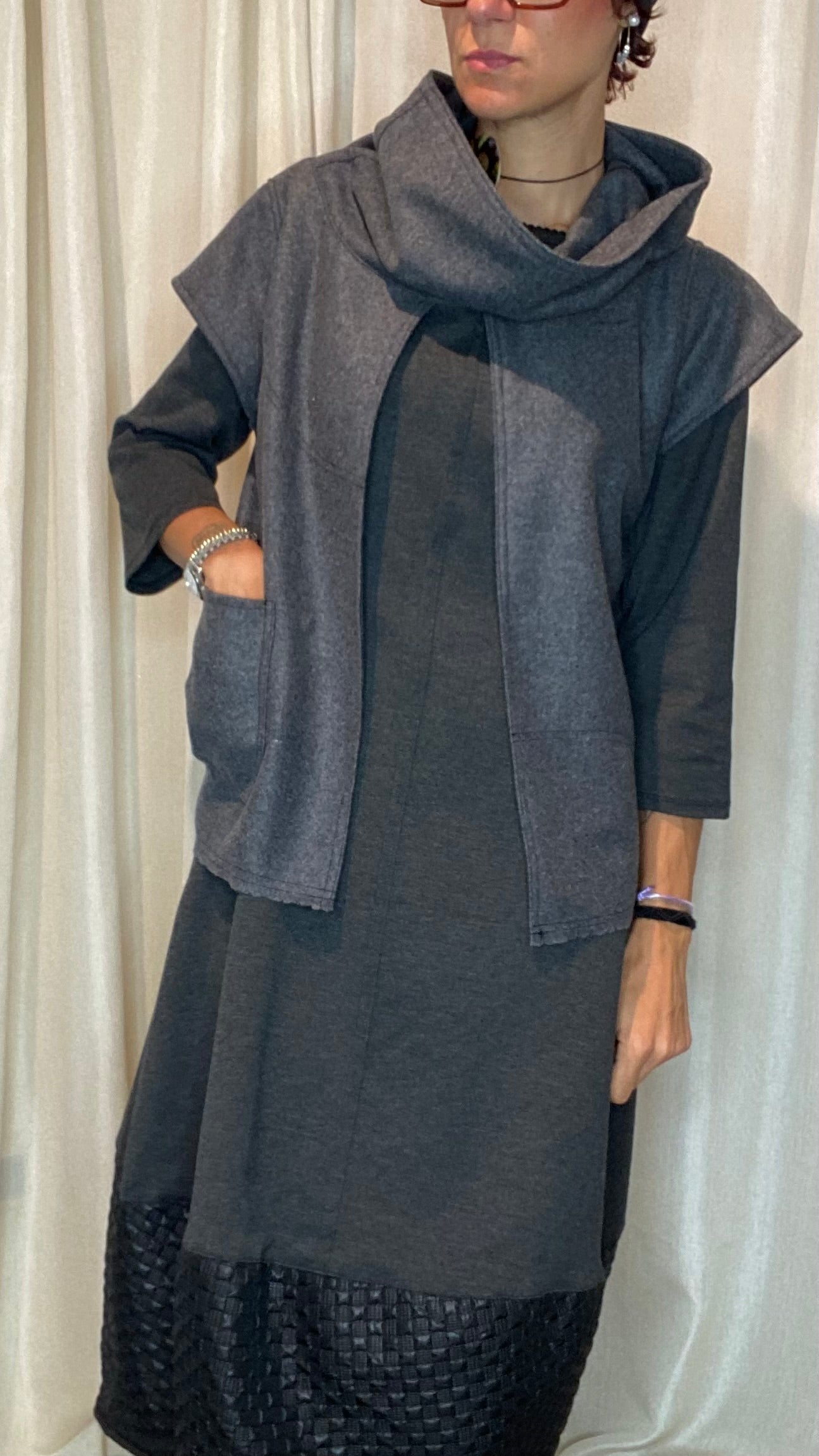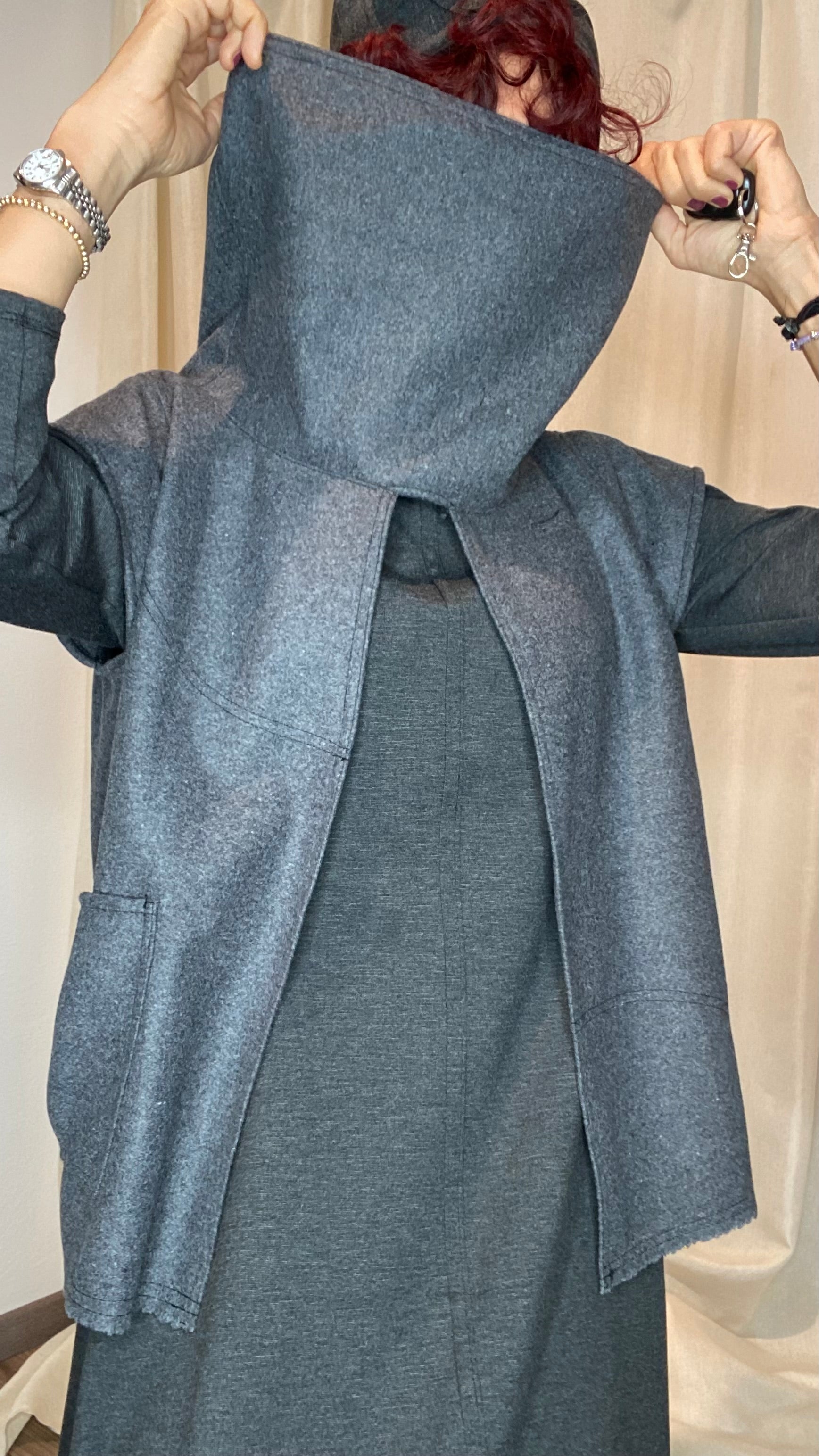 Coprispalle in lana, con manica ad aletta, collo alto e tasca laterale. Taglia unica, veste dalla tg 38 alla 50.