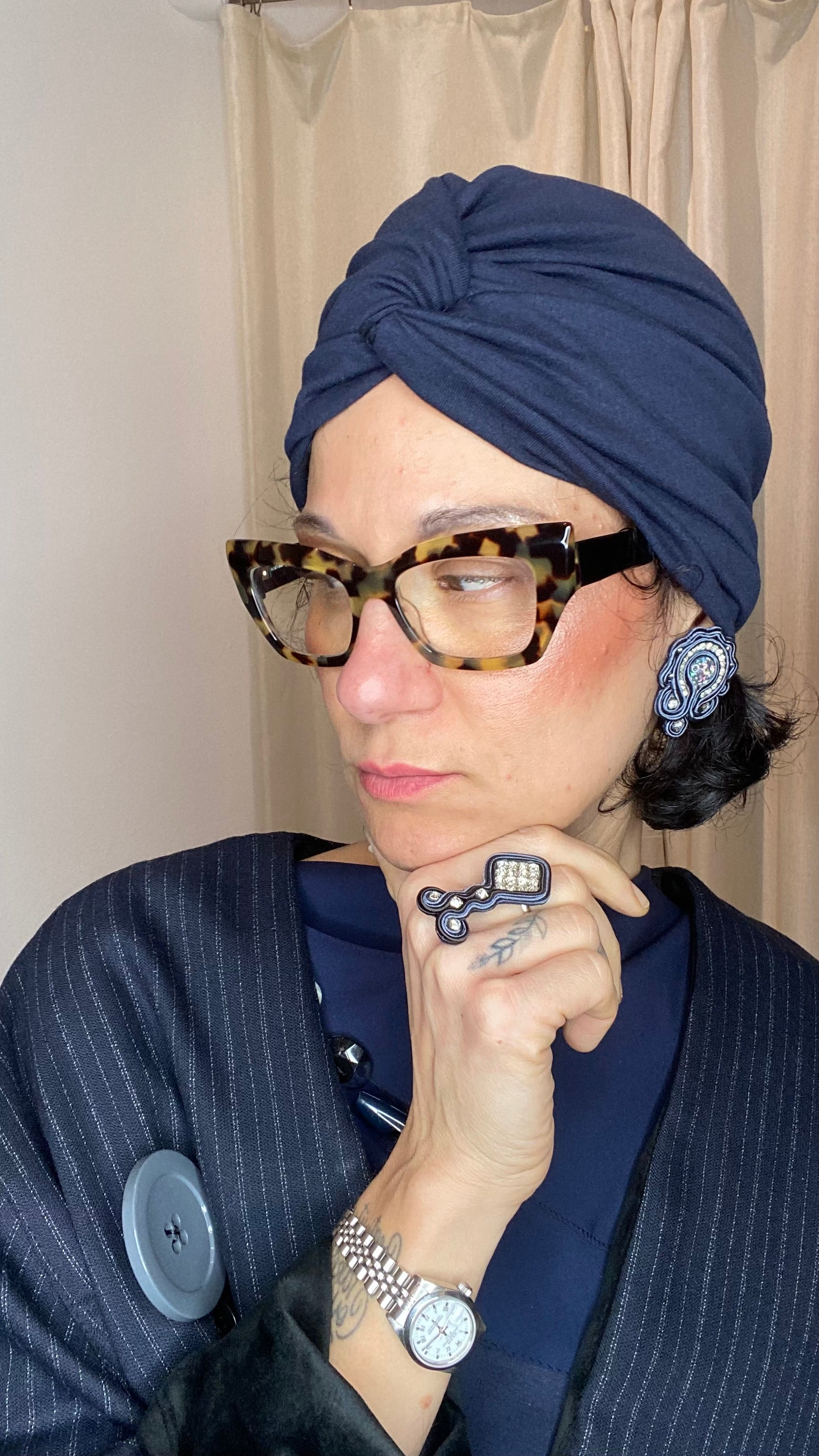 Turbanti in tessuti alasticizzati con nodo sul davanti ed elastico sul retro. Taglia unica, sono adatti a tutti.